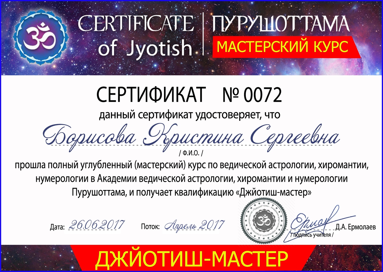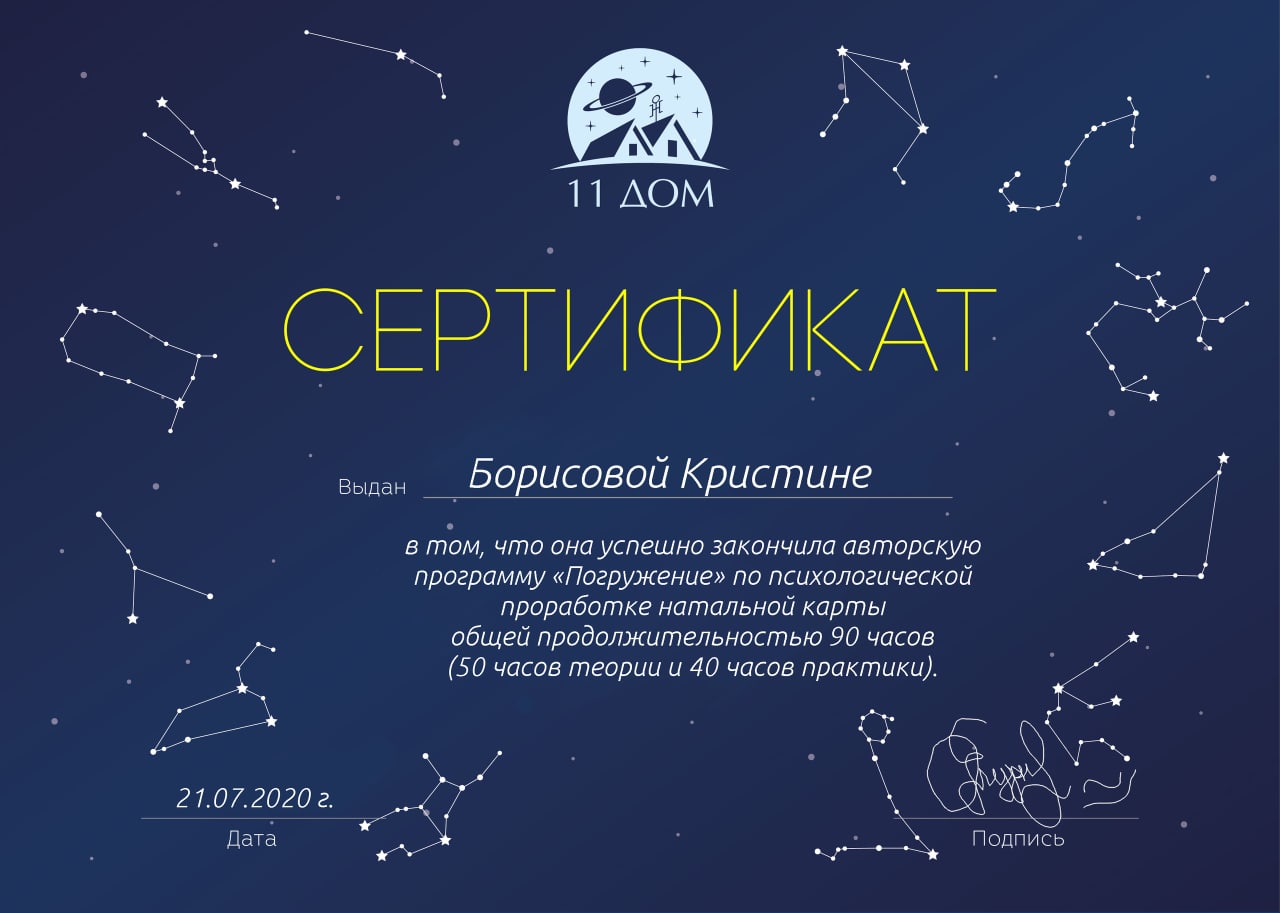 С 2016 года прошла более 10 курсов по обучению астрологии, нумерологии, энергопрактики, психологии, продвижению онлайн и развитию личного бренда